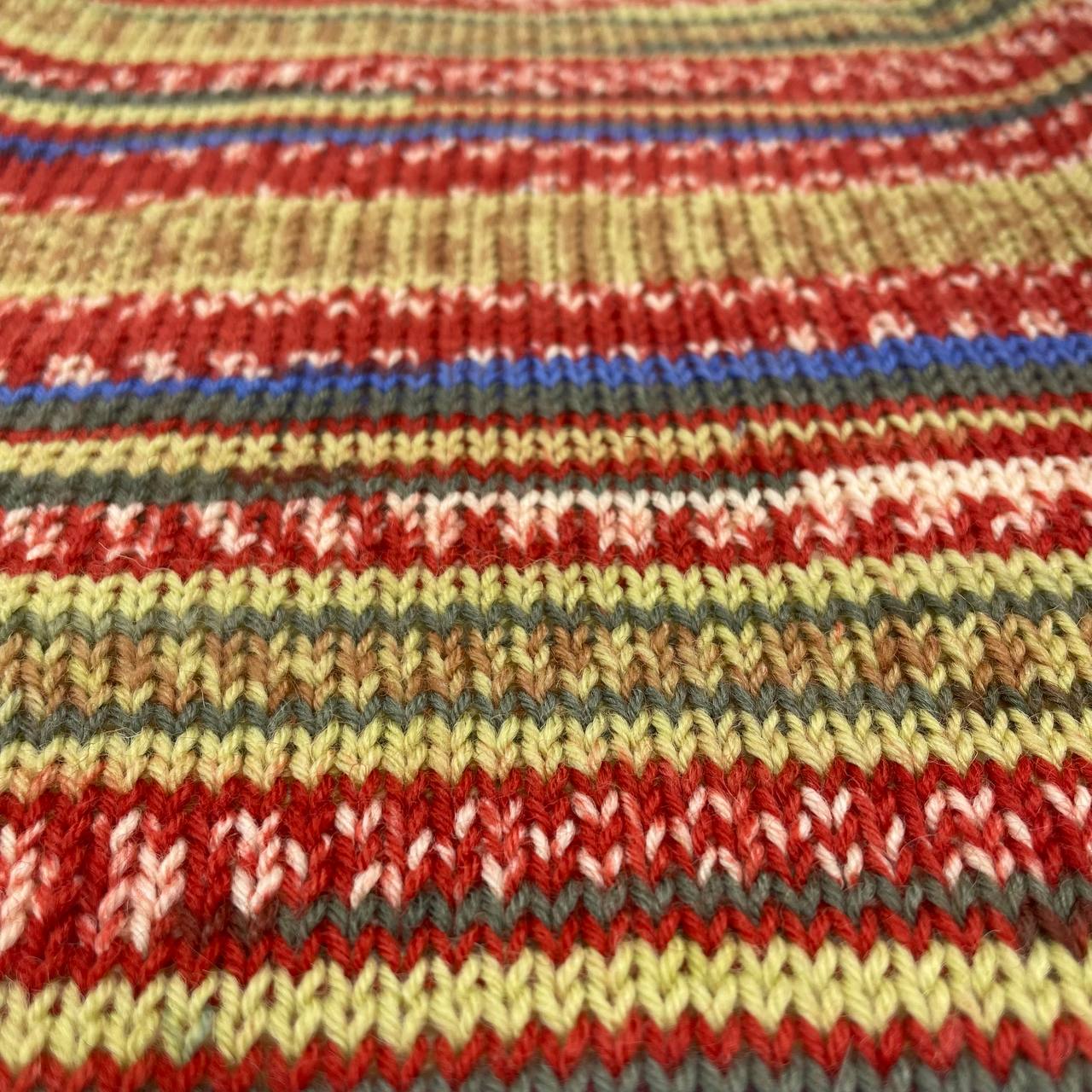 Рисунок с эффектом жаккарда. Нить окрашена секционно так, что при вязании лицевой гладью формируется сложный норвежский или жаккардовый узор без необходимости менять нити.