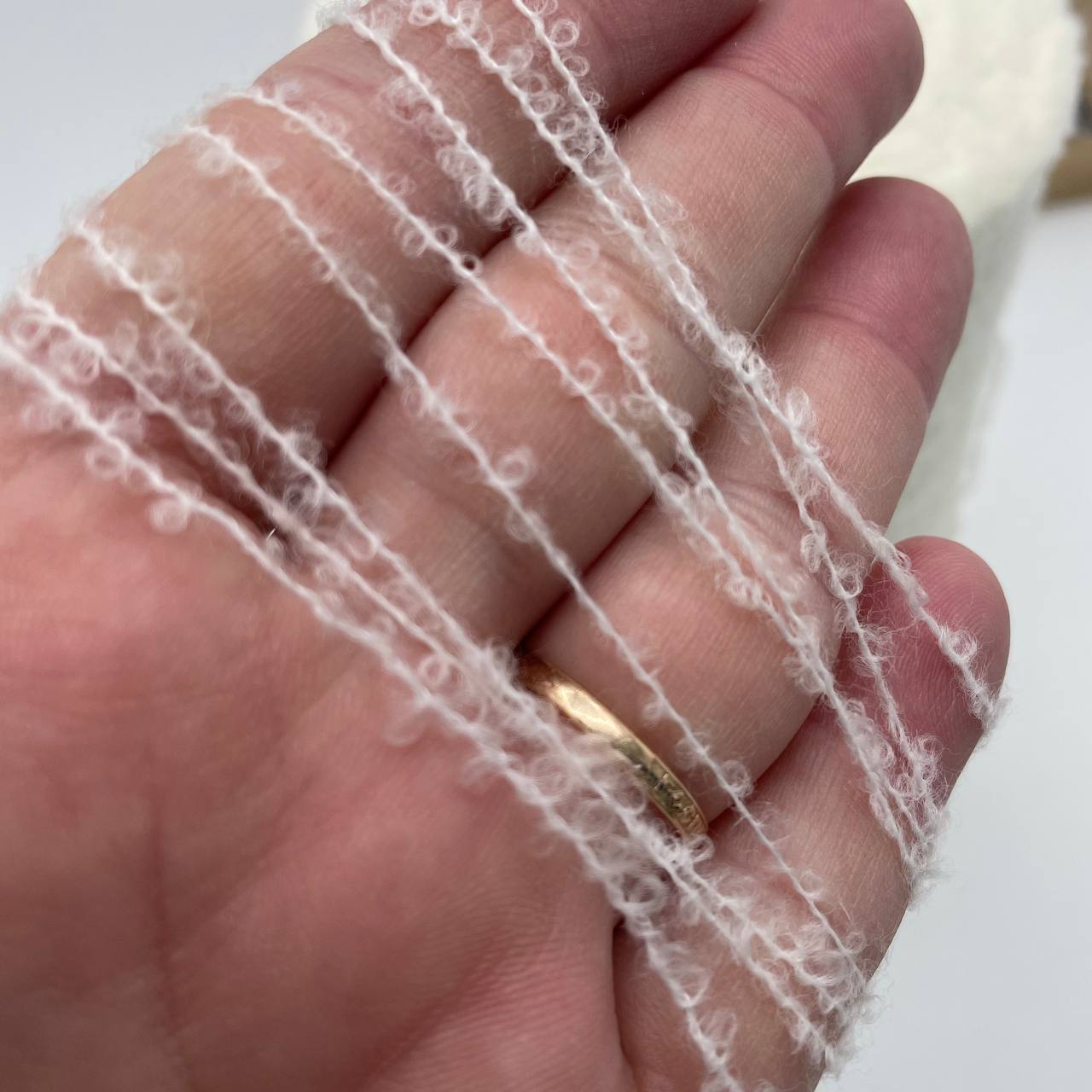 Очень мягкое, лёгкое и не колючее мелкое букле. Можно вязать в 1-2 нити, а так же добавить подходящий по цвету компаньон, например меринос или мохер.