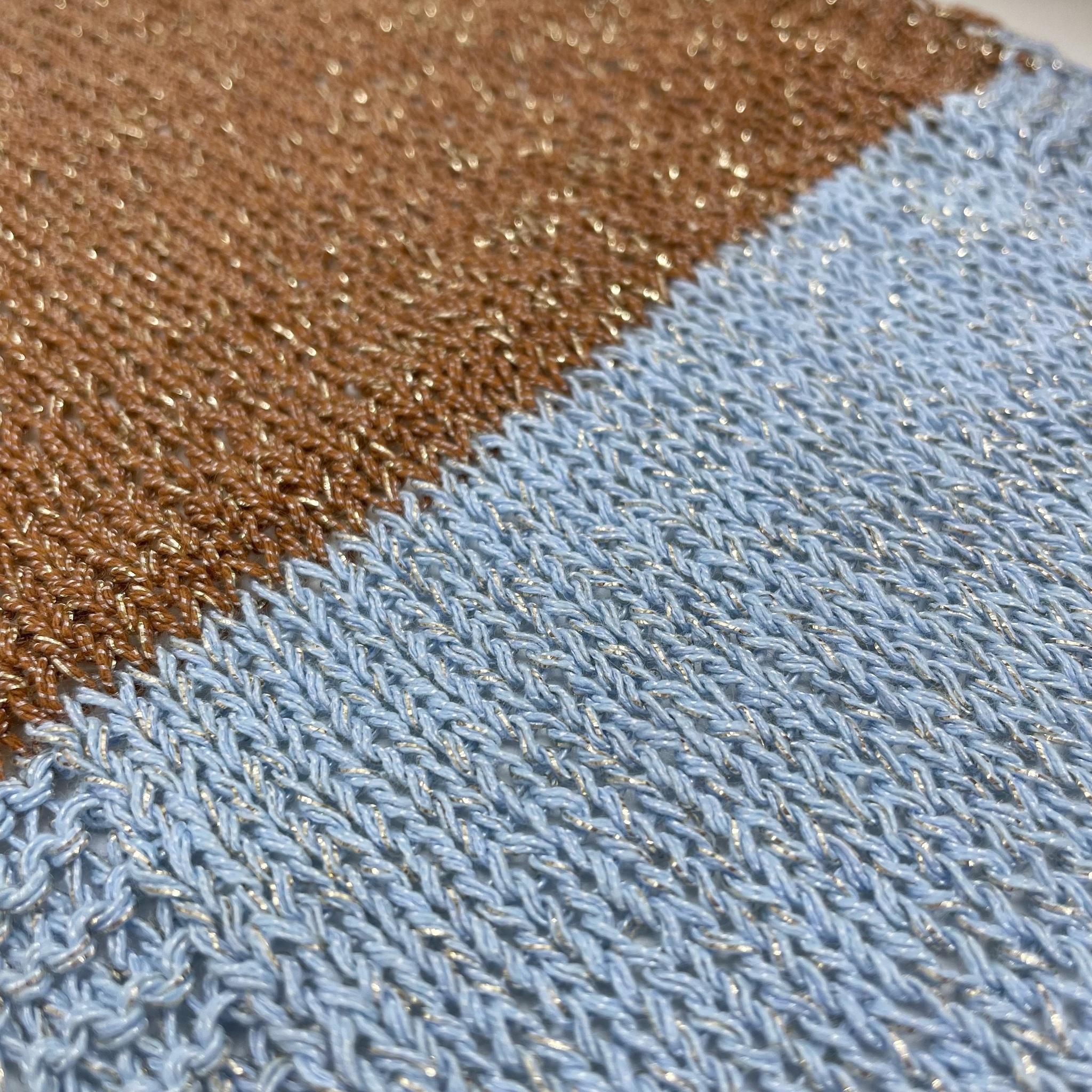 Пряжа очень мягкий, тактильно приятный хлопок с впечатанным люрексом который напоминает фольгу, гладкую и слегка холодящую кожу. Поэтому эта пряжа идеальна для жаркого лета. Отлично подойдет для летних топов, маек, футболок и платьев. Полотно будет струящееся и в то же время держать форму.