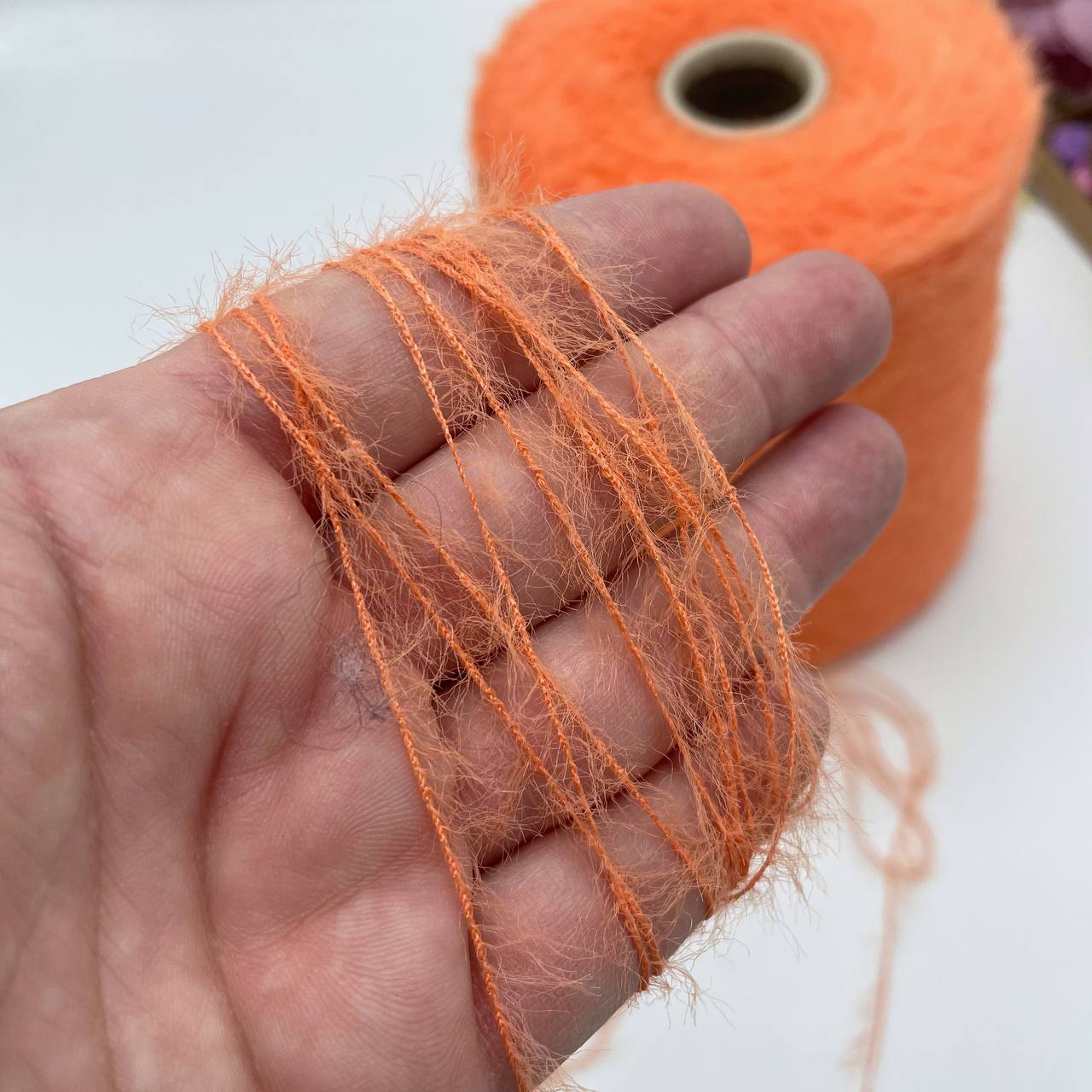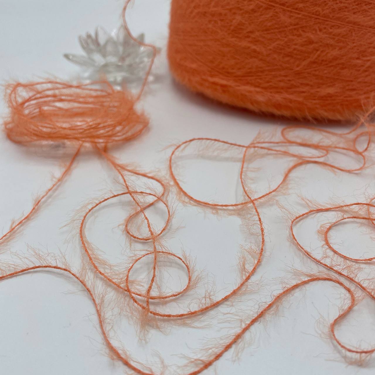 Фантазийная пряжа травка. Длина ворса 1 см, Очень нежная и шелковистая ниточка с блеском, подобно натуральному шёлку. Нить достаточно эластична, немного тянется. Это хорошо тем, что изделие из этой пряжи будет держать форму и будет стабильным. Такую нить можно добавить в подмот к основной пряже, а так же можно использовать как самостоятельную нить.