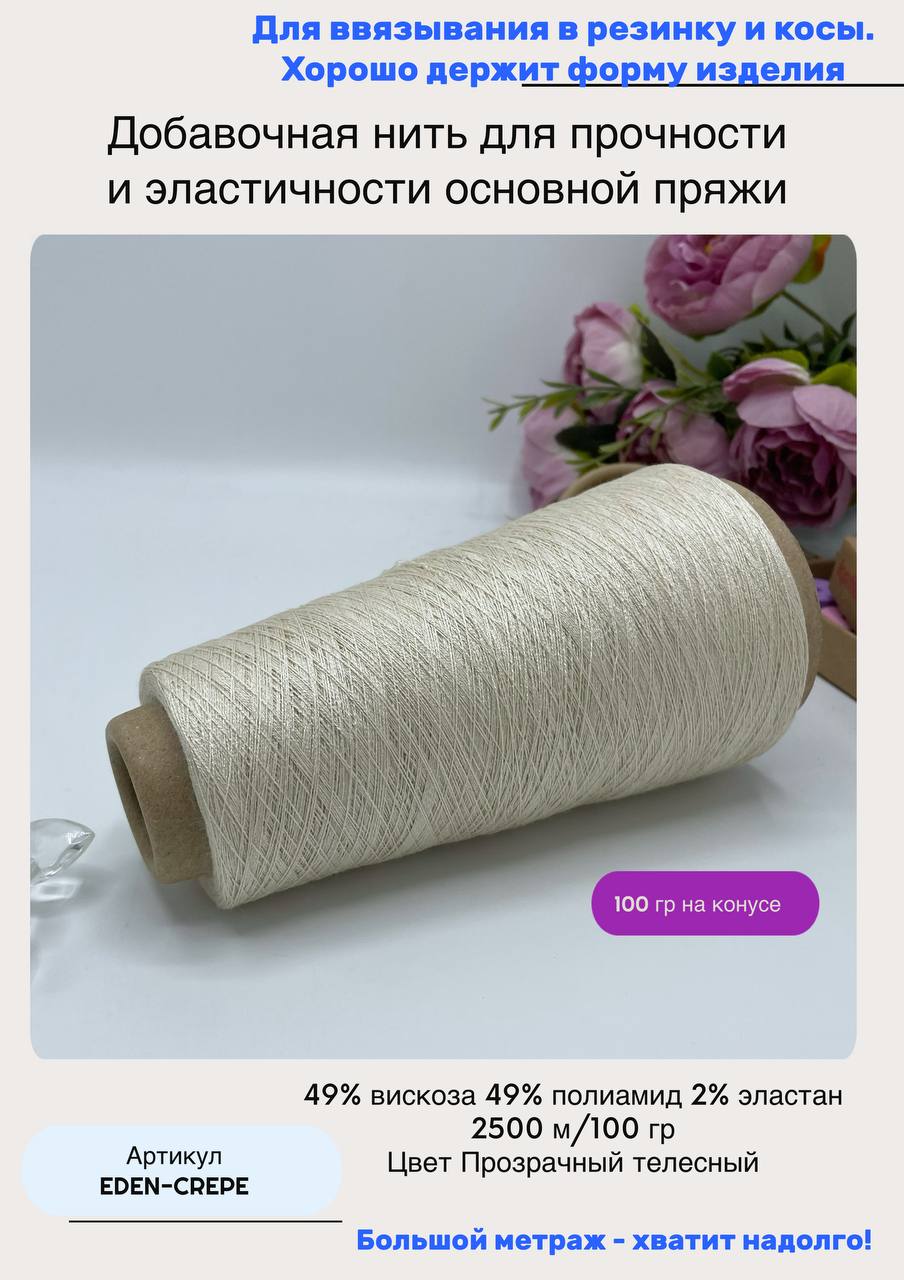 Эластичная пряжа полиамид с вискозой — это идеальное решение для ваших творческих проектов. Эластичная нить обладает упругими свойствами, благодаря которым ваши изделия будут долго сохранять привлекательный вид. Пряжа для вязания с эластичным полиамидом прекрасно подходит для создания одежды, аксессуаров и декоративных элементов.