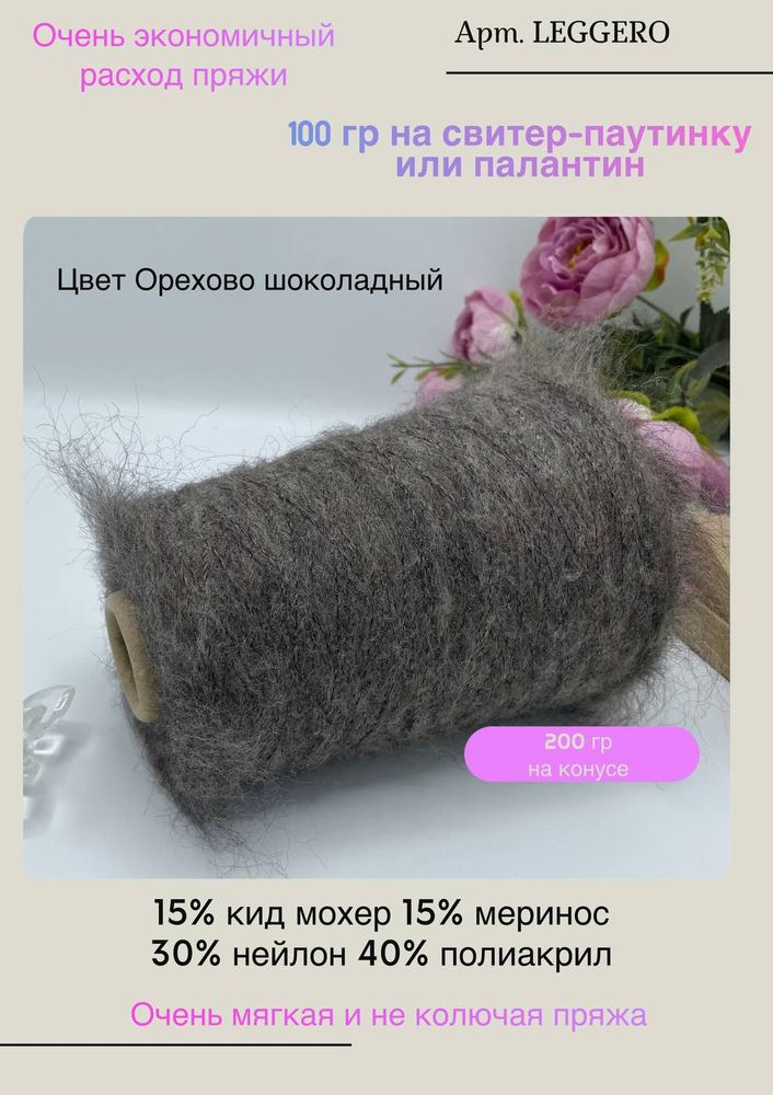 Состав: 15% кид мохер 15% меринос 30% нейлон 40% полиакрил