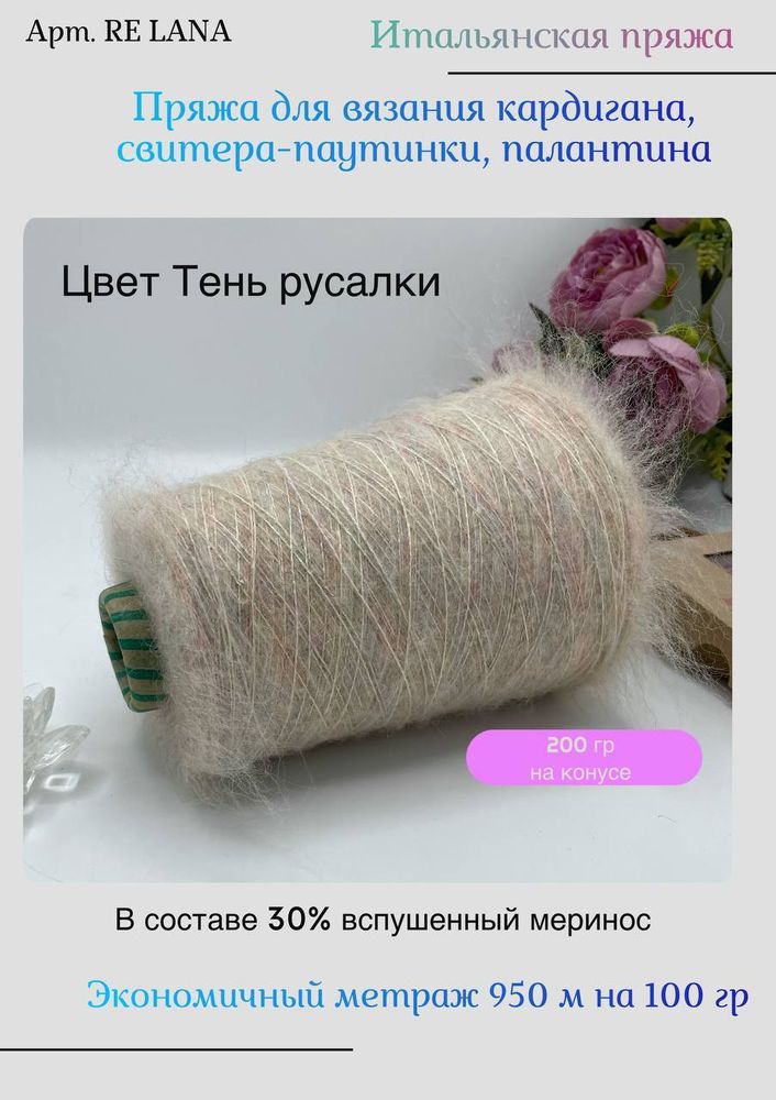Очень мягкая текстура нити приятно ощущается на коже, что делает ее идеальной для создания свитера паутинки, уютного кардигана или невесомого палантина, который станет настоящим украшением вашего гардероба.