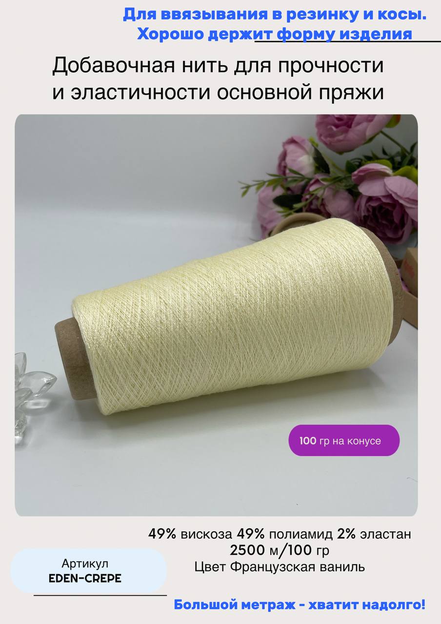 Эластичная пряжа полиамид с вискозой — это идеальное решение для ваших творческих проектов. Эластичная нить обладает упругими свойствами, благодаря которым ваши изделия будут долго сохранять привлекательный вид. Пряжа для вязания с эластичным полиамидом прекрасно подходит для создания одежды, аксессуаров и декоративных элементов.