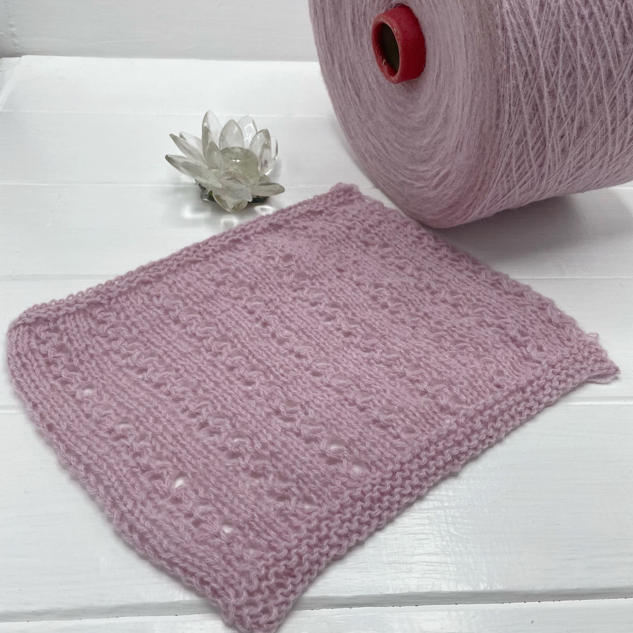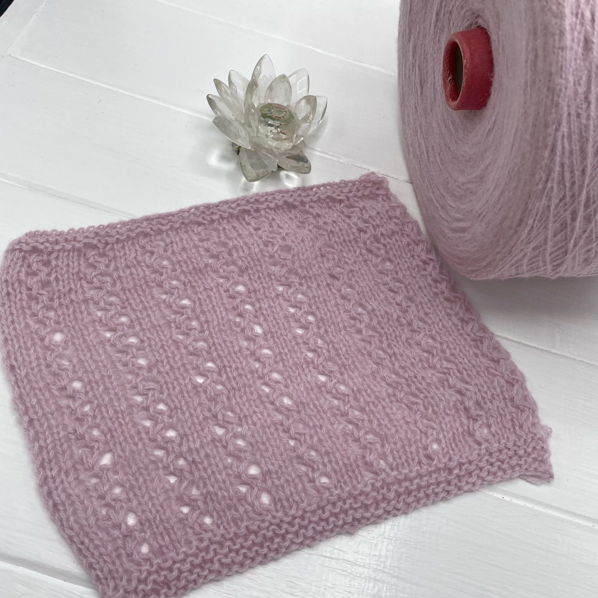 Нежнейший меринос. Нить имеет пористую структуру и немного вспушена, за счет чего она очень легкая и расход на изделие будет минимальный. На простой свитер 46 размера лицевой гладью в две нити примерно 300-400 гр. Образец связан на спицах 3,5 мм в две нити